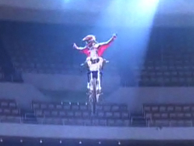 Самый крутой прыжок на мотоцикле.