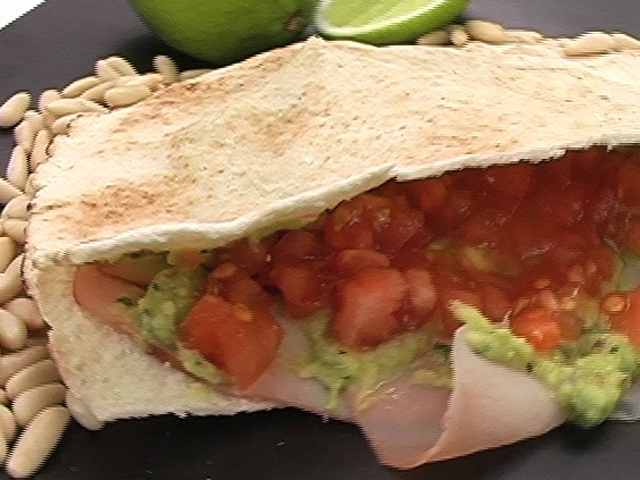 Вкуснейшая закуска из мякоти авокадо:Копченая индейка — 7 кусочков;пита — 4 штуки;авокадо — 1 штука;лайм — 2 штуки;помидоры 3 штуки;сок лайма — 100 гр;лук — 1 штука;соль, перец, оливковое масло, соус «Тобаско», петрушка - по вкусу. Язык: Русский