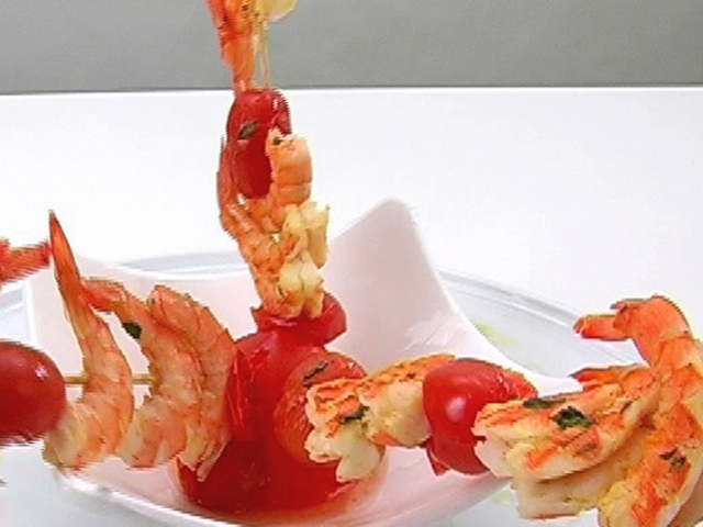 Замечательное блюдо для настоящих ценителей креветок.Состав:вареные креветки — 18 штук;карри — 1 чайная ложка;сок одного лимона;черри — 9 штук;петрушка — 2 столовых ложки;соль, нерафинированное оливковое масло — по вкусу. Язык: Русский