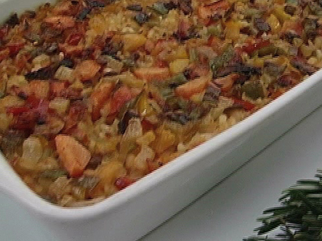 Горячее блюдо из овощей и риса.Состав:рис — 1,5 стакана;овощной бульон — 3 стакана;балгарский перец — по 1/4 стакана;лук — 1/4 стакана;морковь — 1/4 стакана;чеснок — 1 зубчик;паприка, оливковое масло — по вкусу. Язык: Русский