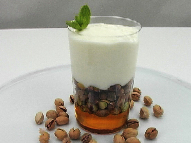 Разнообразие в десертной жизни вашей семьи.Состав:йогурт — 1 стакан;мед — 150 гр;сахар — 40 гр;вода — 1 столовая ложка;сливки — 1/2 стакана;фисташки — 1 стакана;желатин — 1 порция. Язык: Русский