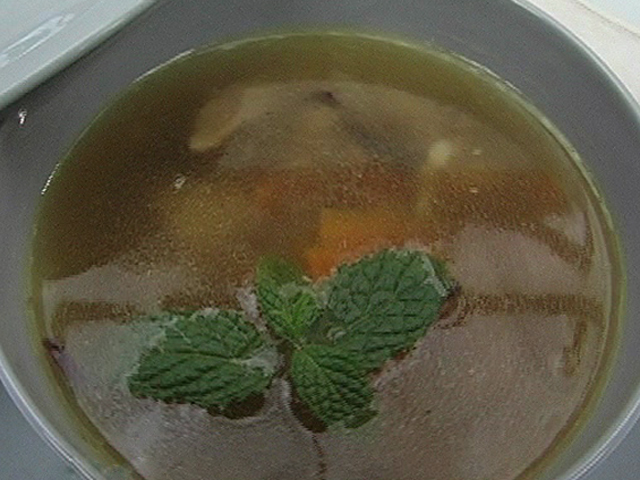 Вкусный суп с настоящими лесными грибами.Состав:грибы — 200 гр;куриный бульон — 400 гр;лук — 1 штука;морковь — 1 штука;шерри — 2 столовых ложки;масло — 1 столовая ложка;соль, белый перец — по вкусу. Язык: Русский