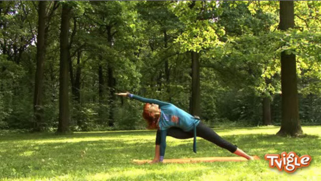 Уттхита Паршва Конасана — поза вытянутого бокового угла. Язык: Русский